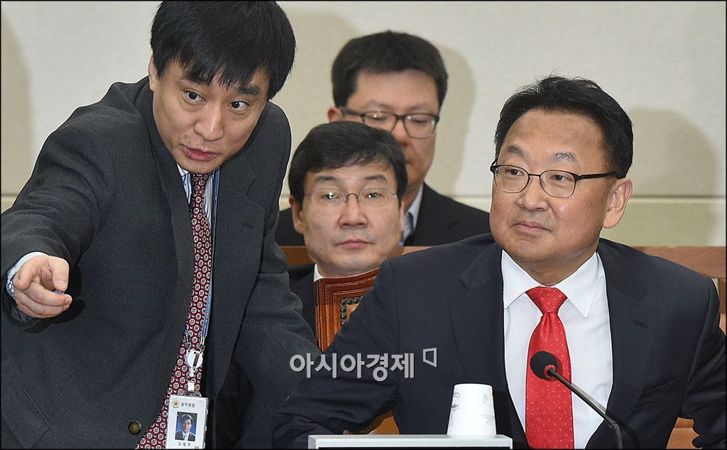 유일호 경제부총리 겸 기획재정부 장관 후보자(사진 오른쪽)는 11일 국회에서 열린 국회 기획재정위원회 인사청문회에 참석했다.