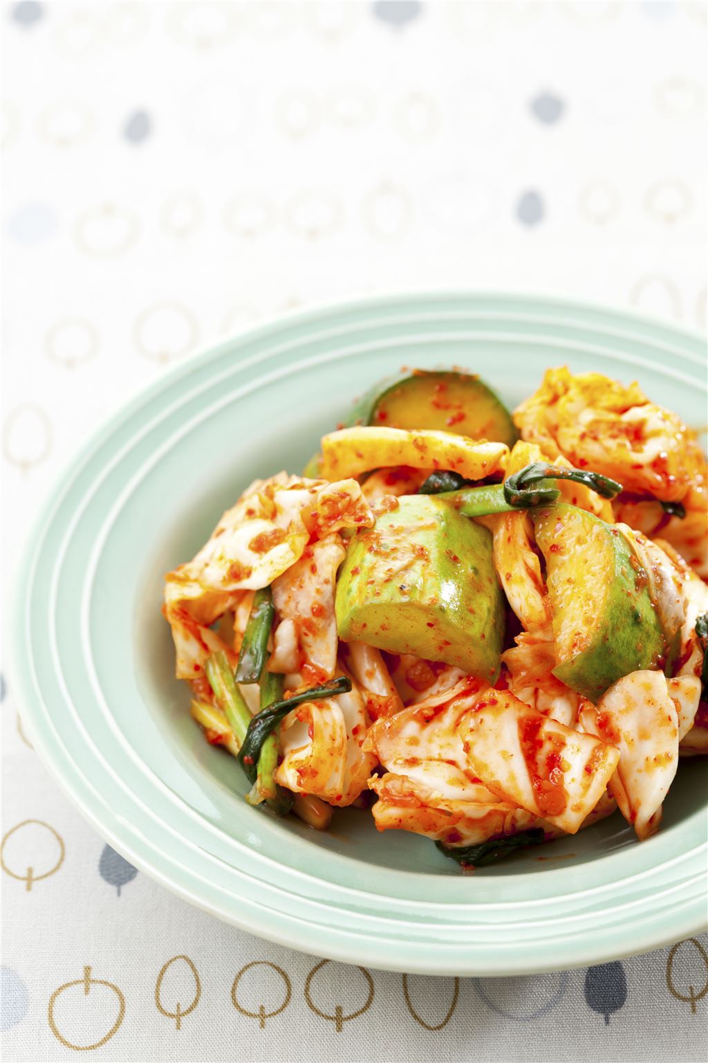 주재료(8인분)양배추 1/4통 (300g), 오이 1개, 실파 50g양념 재료고춧가루 1/2컵, 다진 새우젓 2, 다진 마늘 2, 생강즙 약간, 굵은 소금 2, 설탕 1만들기▶ 요리 시간 30분과정 1