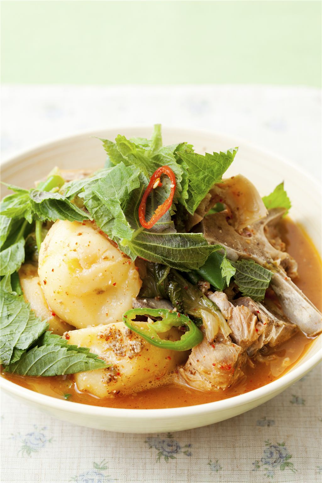 주재료(2인분)돼지등뼈 1kg, 우거지 200g, 감자 2개, 대파 1대, 풋고추 1개, 붉은 고추 1개, 다진 마늘 2, 다진 생강 약간, 들깨가루 3~4, 깻잎 10장(또는 깻잎순 1줌), 고춧가루 2~3, 소금 약간돼지등뼈 손질 재료양파 1/2개, 통후추 약간, 된장 1우거지 양념 재료된장 3, 고춧가루 1, 다진 마늘 1, 참기름 1만들기▶ 요리 시간 1시간과정 1