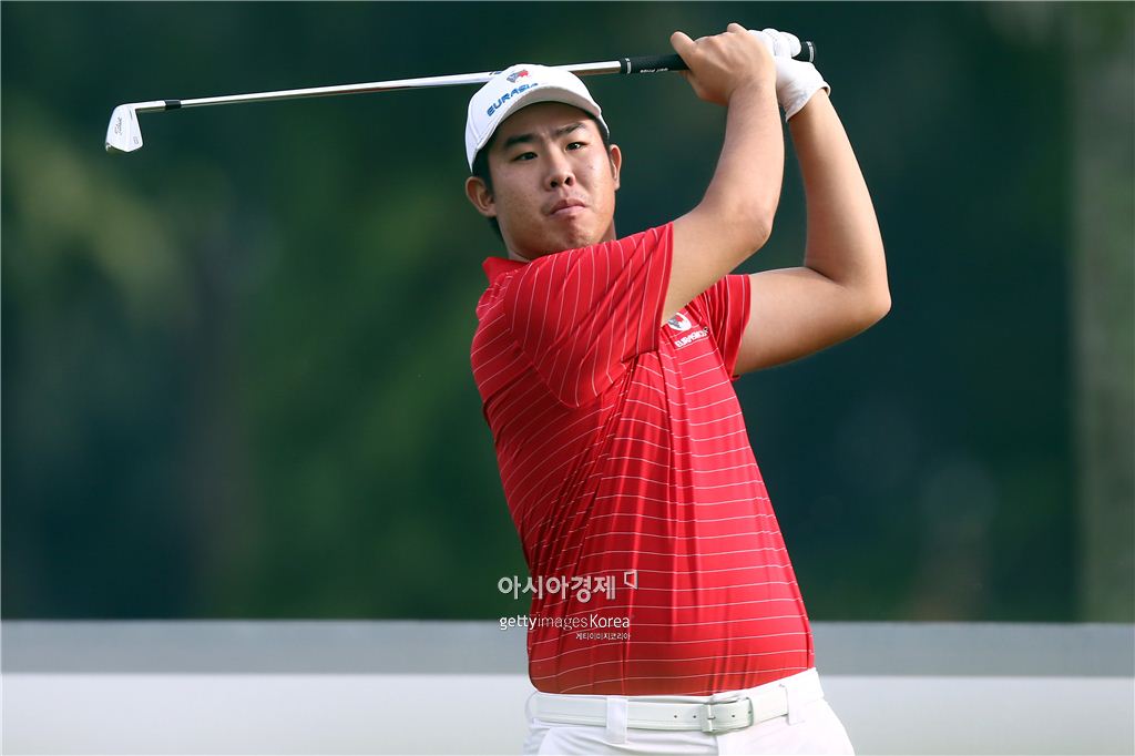 안병훈이 유라시아컵 첫날 포볼경기에서 아이언 샷을 하고 있다. 쿠알라룸푸르(말레이시아)=Getty images/멀티비츠