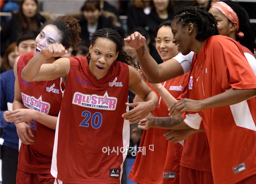 [당진=아시아경제 김현민 기자] 2015~2016 여자프로농구 올스타전이 17일 충남 당진실내체육관에서 열렸다. 남부선발 모니크 커리가 MVP로 호명되고 있다.김현민 기자 kimhyun81@asiae.co.kr<ⓒ세계를 보는 창 경제를 보는 눈, 아시아경제(www.asiae.co.kr) 무단전재 배포금지>