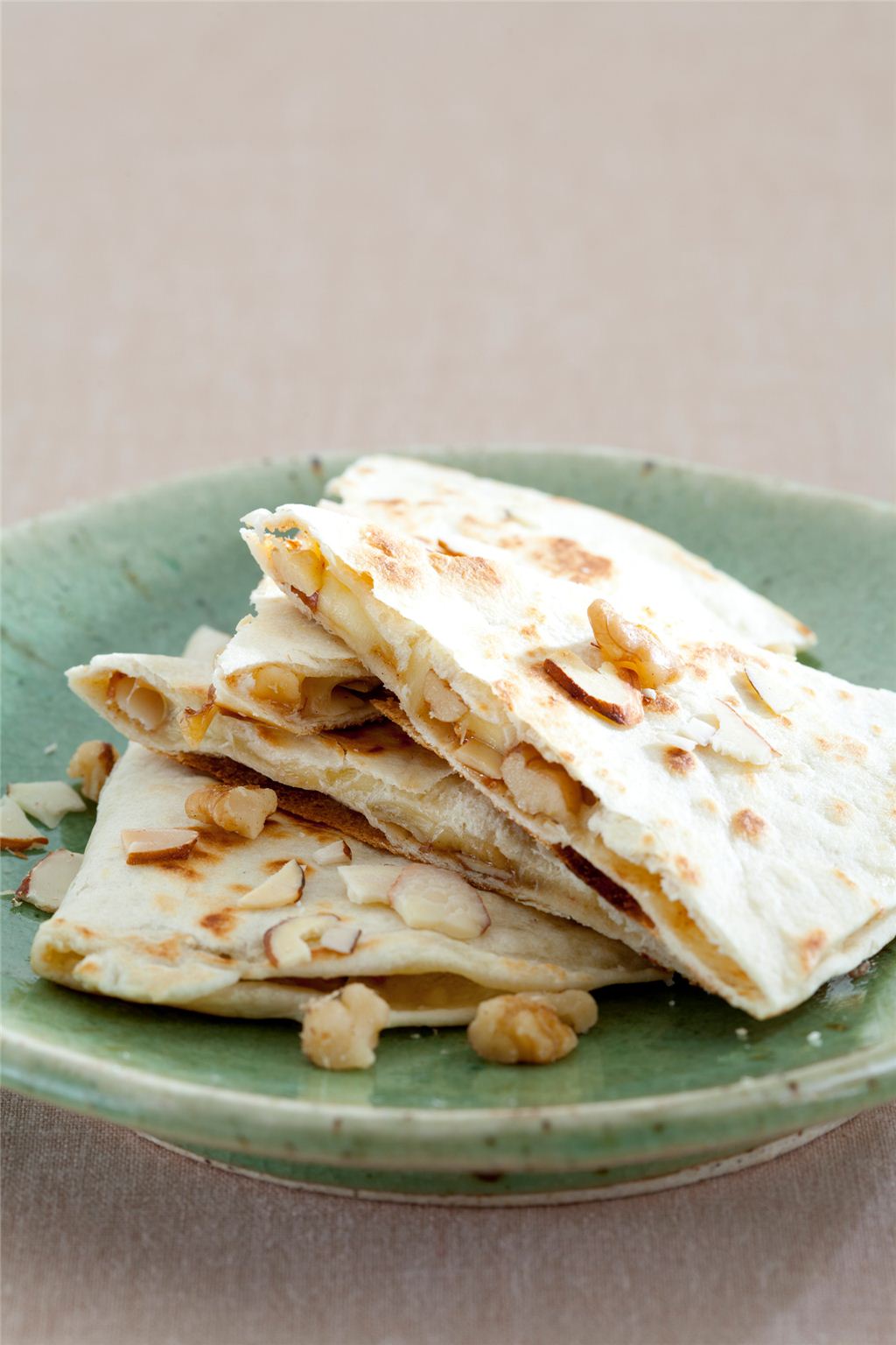 또띠아 2장, 피자 치즈 1컵, 황설탕 2술, 견과류 적당량