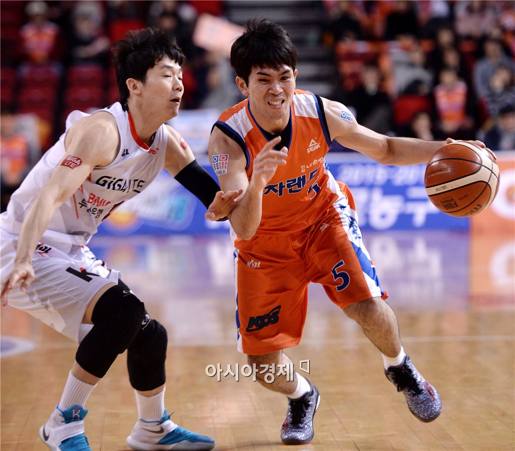 [인천=아시아경제 김현민 기자] 프로농구 인천 전자랜드와 부산 kt의 경기가 19일 인천 삼산월드체육관에서 열렸다. 전자랜드 정병국이 상대 김현수의 수비를 뚫고 공격하고 있다. 김현민 기자 kimhyun81@asiae.co.kr<ⓒ세계를 보는 창 경제를 보는 눈, 아시아경제(www.asiae.co.kr) 무단전재 배포금지>