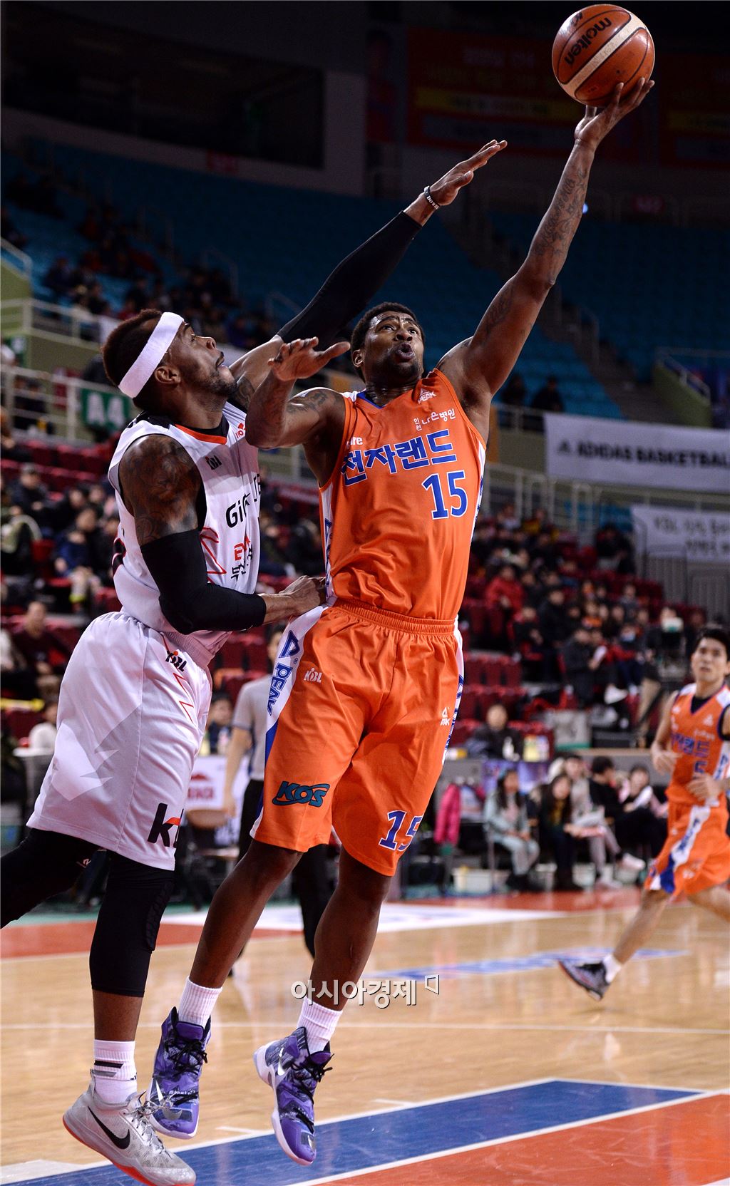 [인천=아시아경제 김현민 기자] 프로농구 인천 전자랜드와 부산 kt의 경기가 19일 인천 삼산월드체육관에서 열렸다. 전자랜드 포웰이 상대 수비를 뚫고 슛하고 있다. 김현민 기자 kimhyun81@asiae.co.kr<ⓒ세계를 보는 창 경제를 보는 눈, 아시아경제(www.asiae.co.kr) 무단전재 배포금지>