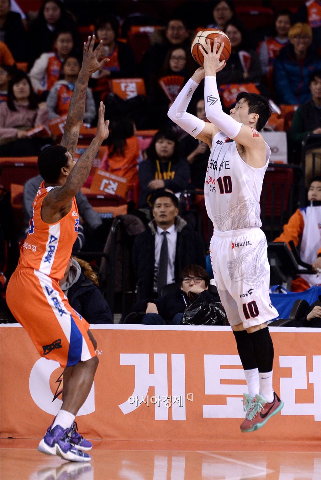 [인천=아시아경제 김현민 기자] 프로농구 인천 전자랜드와 부산 kt의 경기가 19일 인천 삼산월드체육관에서 열렸다. kt 조성민이 상대 수비를 뚫고 슛하고 있다. 김현민 기자 kimhyun81@asiae.co.kr<ⓒ세계를 보는 창 경제를 보는 눈, 아시아경제(www.asiae.co.kr) 무단전재 배포금지>