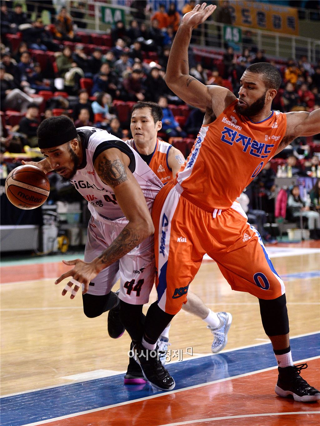 [인천=아시아경제 김현민 기자] 프로농구 인천 전자랜드와 부산 kt의 경기가 19일 인천 삼산월드체육관에서 열렸다. kt 심스가 상대 콘리의 파울에 중심을 잃고 넘어지고 있다. 김현민 기자 kimhyun81@asiae.co.kr<ⓒ세계를 보는 창 경제를 보는 눈, 아시아경제(www.asiae.co.kr) 무단전재 배포금지>