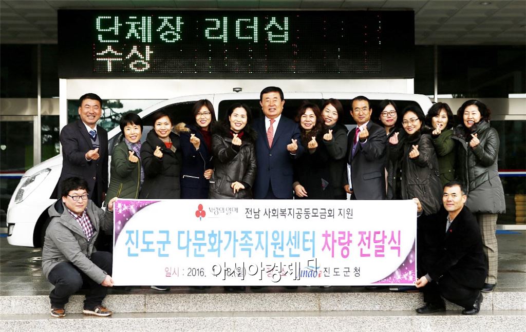 진도군이 전남사회복지공동모금회의 지원으로 진도군 다문화 가족 지원센터에 차량을 기탁했다.<br />