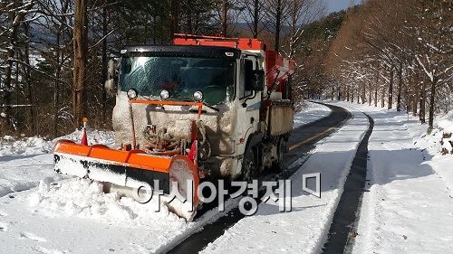 주요 간선도로 및 취약노선…덤프 및 제설차량 55대 제설작업 실시[아시아경제 문승용]지난 18일 새벽부터 내린 눈으로 15cm의 누적적설량을 기록한 담양군은 18일부터 3일간 군민과 합심해 폭설 피해 최소화를 위한 제설작업을 실시했다.군은 18일 새벽, 대설주의보 발표 전부터 상습 결빙에 따른 교통사고 다발구간과 외곽지역 주요 고갯길 등 제설 취약지역을 미리 점검했다. 또한 군과 읍·면 제설차량 18대와 군민들이 보유한 트랙터 부착형 제설기 37대 등을 이용해 응급복구를 실시하는 등 안전사고가 발생하지 않도록 원활한 차량소통을 위해 발 빠르게 대응했다.군 관계자는 "동절기 폭설로 인한 제설 작업은 행정 인력만으로는 충분하지 않아 군민 모두의 도움이 필요한 일"이라며 "재난사고 없는 겨울을 나기 위해 내 집, 내 골목, 내 점포 앞 등 눈 치우기 운동에 적극 동참해 달라"고 당부했다.한편, 군은 올 겨울 많은 눈이 내릴 것을 대비해 주요도로 23개 노선 제설작업에 필요한 제설용 소금 500톤, 염화칼슘 20톤 친환경 제설제 100톤을 확보해 군민과 관광객들의 안전한 차량통행을 위해 만반의 준비를 마쳤다.문승용 기자 msynews@ <ⓒ세계를 보는 창 경제를 보는 눈, 아시아경제(www.asiae.co.kr) 무단전재 배포금지>