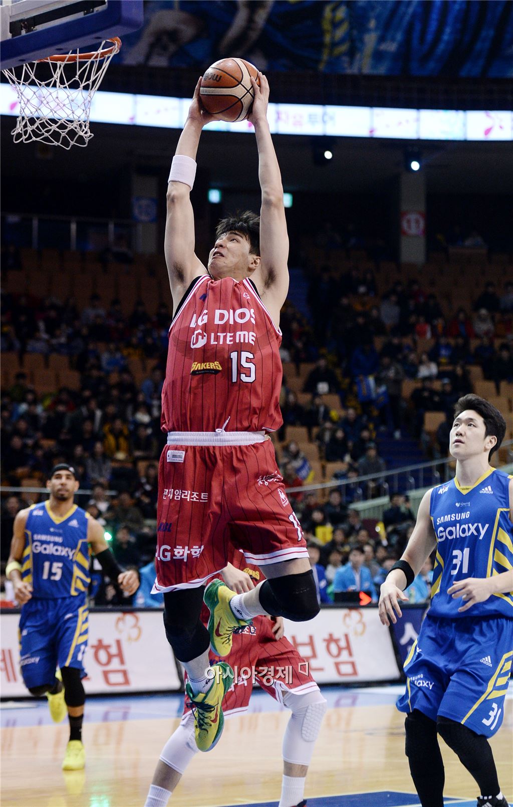 [잠실=아시아경제 김현민 기자] 프로농구 서울 삼성과 창원 LG의 경기가 20일 잠실실내체육관에서 열렸다. LG 김종규가 상대 수비를 뚫고 호쾌한 덩크슛을 성공시키고 있다. 김현민 기자 kimhyun81@asiae.co.kr<ⓒ세계를 보는 창 경제를 보는 눈, 아시아경제(www.asiae.co.kr) 무단전재 배포금지>