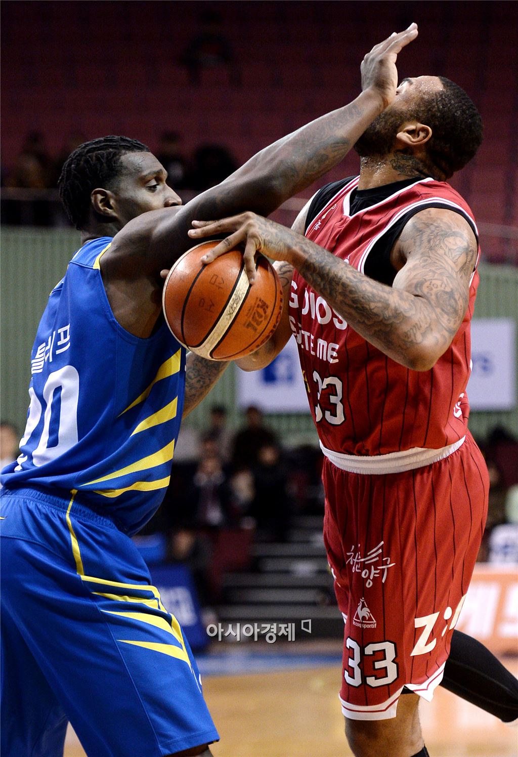 [잠실=아시아경제 김현민 기자] 프로농구 서울 삼성과 창원 LG의 경기가 20일 잠실실내체육관에서 열렸다. LG 길렌워터가 상대 라틀리프의 파울을 유도하고 있다. 김현민 기자 kimhyun81@asiae.co.kr<ⓒ세계를 보는 창 경제를 보는 눈, 아시아경제(www.asiae.co.kr) 무단전재 배포금지>