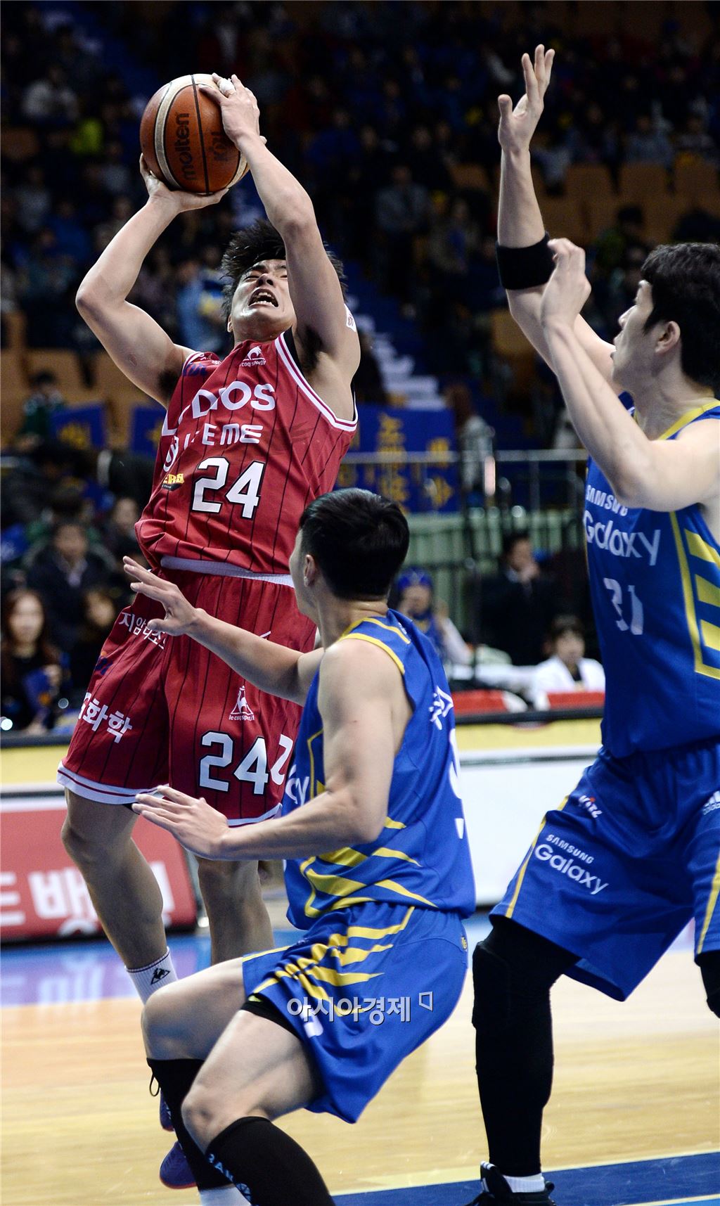 [잠실=아시아경제 김현민 기자] 프로농구 서울 삼성과 창원 LG의 경기가 20일 잠실실내체육관에서 열렸다. LG 정성우가 상대 김준일의 수비를 뚫고 슛하고 있다. 김현민 기자 kimhyun81@asiae.co.kr<ⓒ세계를 보는 창 경제를 보는 눈, 아시아경제(www.asiae.co.kr) 무단전재 배포금지>