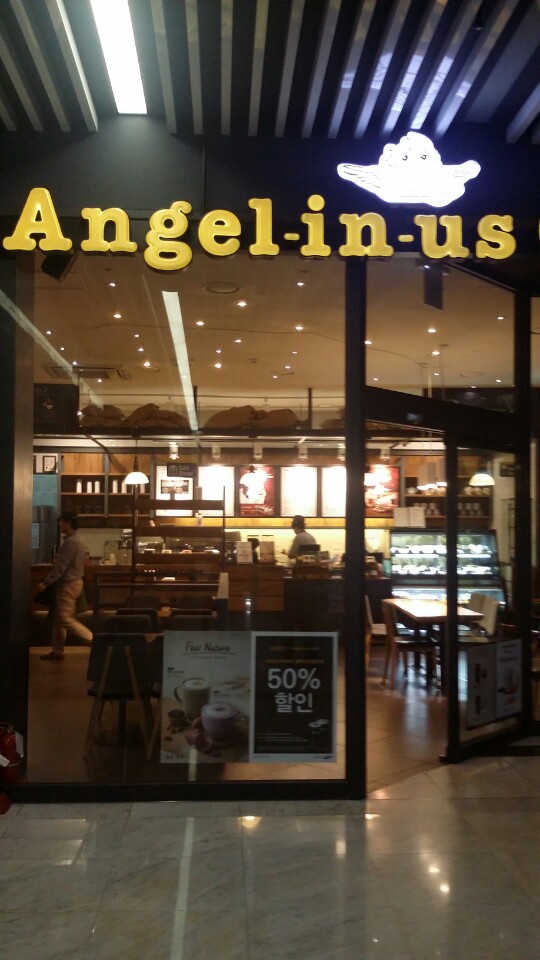 커피전문점 엔제리너스커피 매장에 50% 할인을 알리는 안내문이 붙어있다.