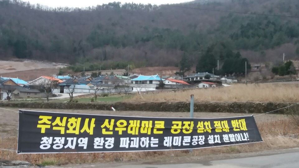 [고흥군 포두면 주민들이 폐교부지에 레미콘 공장 건립을 반대하는 플래카드를 내거는 등 반발하고 있다.]