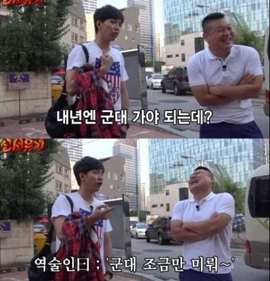 [아시아경제 온라인이슈팀] 가수 겸 배우 이승기가 오는 2월1일 현역병으로 입대한다는 소식을 전해 화제다. 아울러 그의 군입대에 관련한 과거의 발언이 새삼 눈길을 끈다.지난해 방송된 tvN '신서유기'에서는 이승기가 강호동과 함께 군입대에 관한 이야기를 꺼냈다.이승기는 "내가 점을 봤는데, 올해는 반반이고 내년에는 잘 된다더라"라면서 말문을 뗐다.이어 이승기는 "내년에 군대에 간다고 했더니 미루라더라. 그래서 '내년에 군대 아니면 교도소 중 하나는 가야 한다'고 답했다"라고 말해 폭소를 자아냈다.한편 이승기가 입대에 앞서 발표하는 신곡 '나 군대간다'는 21일 낮 12시에 공개된다. 온라인이슈팀 issue@asiae.co.kr<ⓒ세계를 보는 창 경제를 보는 눈, 아시아경제(www.asiae.co.kr) 무단전재 배포금지>