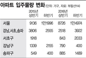 [아시아경제 최대열 기자]지난해 서울 강남권을 중심으로 일었던 전세난이 새해 들어서도 가라앉지 않고 더욱 고조될 조짐을 보이고 있다.재건축 이주가 본격화하면서 전세수요가 급증하고 있는 가운데 지역 내 입주물량이 오히려 줄어들 것으로 예상되기 때문이다. 대출규제 강화에 금리인상까지 예고돼 매매심리가 가라앉은 점도 전세난을 부채질할 전망이다.21일 부동산114에 따르면 올 상반기 서울 강남·서초·송파구 등 이른바 강남3구 입주예정 아파트는 2518가구다. 이는 지난해 같은 기간보다 30% 이상 적은 물량이다. 지난해 하반기보다도 적다.반면 재건축 이주로 인한 전세수요는 갈수록 늘어날 것으로 보인다. 최근 관리처분계획 인가를 받은 강남구 개포시영을 비롯해 서초구 한신19차ㆍ한신2차ㆍ우성아파트, 반포동 삼호가든3차 등이 올 상반기 중 이주에 나설 전망이다. 이미 이주를 시작한 강동구 상일동 고덕주공3단지나 올해 중 이주할 고덕주공7단지 등 인근 지역까지 포함하면 올 상반기에만 7000여가구가 사라진다. 이들 단지에 입주해 있던 이들은 벌써부터 새 거처를 찾아 헤매는 처지다.저금리 기조가 이어져 전세공급이 원활치 않았던 반면 재건축 이주 등으로 수요가 폭증한 서울 강남권은 이미 지난해부터 극심한 전세난에 시달려왔다. 한국감정원이 집계하는 전셋값 상승률을 보면 지난 한해동안만 강남구(11.3%)ㆍ송파구(10%)ㆍ서초구(10.3%)는 서울 전체 평균치(9.9%)를 웃도는 것으로 집계됐다. 강동구는 1년만에 14%나 올랐다. 다른 지역에 비해 전셋값이 비싼 와중에 오름폭마저 다른 지역을 상회한다는 건 그만큼 전세난이 심화됐음을 보여준다.개포동의 한 공인중개업소 관계자는 "전셋집 구하기가 힘든 걸 뻔히 아는 만큼 인근 지역은 제외하고 처음부터 서울 다른 지역이나 경기도 지역까지 알아보는 사람이 많다"고 분위기를 전했다.지난해부터 집주인의 전세기피로 기존 전셋집을 월세로 전환하는 추세가 강했는데 강남권을 중심으로 매달 수백만원씩 부담하는 초고가 월세도 빈번해졌다. 국토교통부에 접수된 지난달 아파트 실거래가 자료에 따르면 서초동 아크로비스타 전용 242㎡는 월세 1000만원(보증금 1억원)을 기록했다.지난달 거래 기준 월세 300만원이 넘는 초고가 월세의 경우 서울 내 29곳에 달하는데 5곳을 빼면 전부 강남3구에 있는 것으로 파악됐다. 강남구 D공인 관계자는 "월세를 내놓는 집주인이 늘면서 지난해 연말까지 월세시세가 다소 떨어지는 곳도 있었다"며 "하지만 전세수요가 월세로 옮겨가면서 일부 지역을 중심으로 다시 오르는 추세"라고 말했다.올 하반기 들어서는 입주물량이 다소 늘어나지만 이주수요가 훨씬 클 것으로 예상되고 전세매물의 월세화 현상이 더욱 가속화되면서 전세난은 해를 넘겨서도 이어질 것으로 전문가들은 보고 있다. 문제는 지자체나 정부가 전세난을 잡을 만한 카드가 거의 없다는 점이다.박합수 KB국민은행 명동스타PB센터 부센터장은 "강남을 중심으로 국지적인 수급불균형으로 인한 전세시장 불안은 한동안 지속될 전망"이라며 "서울시에서 이주시기를 늦춰 전세수요를 분산하고는 있지만 아예 사업속도를 높여 중장기적으로 공급을 늘리고 주거환경을 개선할 수 있는 전향적인 방안을 검토하는 것도 필요해 보인다"고 말했다.최대열 기자 dychoi@asiae.co.kr<ⓒ세계를 보는 창 경제를 보는 눈, 아시아경제(www.asiae.co.kr) 무단전재 배포금지>