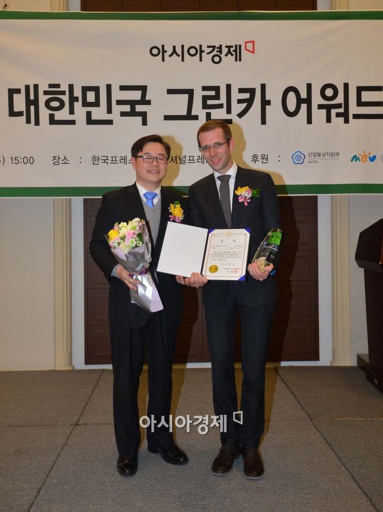 [아시아경제 백소아 기자] 21일 서울 태평로 프레스센터에서 아시아경제신문 주최로 열린 제6회 대한민국 그린카 어워드 시상식에서 그린카를 수상한 BMW와 박일준 산업통상자원부 산업정책실장(왼쪽)이 기념사진 촬영을 하고 있다.백소아 기자 sharp2046@asiae.co.kr<ⓒ세계를 보는 창 경제를 보는 눈, 아시아경제(www.asiae.co.kr) 무단전재 배포금지>