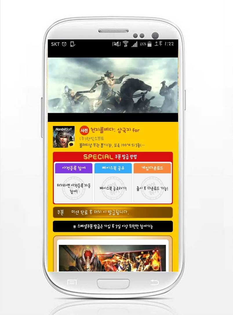 [아시아경제 온라인이슈팀] 사전등록 1위 어플리케이션 ‘모비’가 유저들이 게임을 더욱 풍성하게 즐길 수 있도록 파격적 혜택을 무료로 지급하는 스페셜 사전등록 쿠폰을 추가했다. 이번에 추가한 스페셜 쿠폰은 모바일 전쟁 RPG(Role Playing Game, 롤플레잉 게임) ‘천지를베다 for Kakao’ 사전등록 쿠폰으로 등록자에게는 타 어플이나 사이트에서는 받을 수 없는 ‘모비’만의 플래티넘 부관 뽑기 1장, 보옥 100개 외 3종으로 구성된 5만원 상당의 혜택을 지급한다.‘천지를베다 for Kakao’는 중국 삼국지의 실존 역사와 다채로운 시나리오를 기반으로 다수의 적을 호쾌한 액션으로 베어나가는 모바일 전쟁 RPG다. 기존 버전과는 달리 카카오 버전에서는 '주막 및 보부상 시스템'을 도입해 다양한 인재를 영입할 수 있다. 특히, 삼국지 이야기를 더욱 짜임새 있게 전달하고자 에피소드 시작 단계부터 '시나리오 영상'을 삽입해 게임의 몰입감을 더했다. 촉나라를 대표하는 ‘관우’를 비롯해, ‘하후연’, ‘대교’, ‘조운’, ‘장료’, ‘태사자’, 그리고 제갈량의 부인 ‘황월영’에 이르기까지 개성 만점 명장들이 준비된 만큼 유저의 취향에 맞춰 육성하는 재미도 만끽할 수 있다.‘천지를베다 for Kakao’는 폭넓은 저변확대를 꾀하고자 모바일 게임 플랫폼 ‘카카오 게임하기’에 출시를 앞두고 있다. 지난 12일부터 오는 25일까지 다양한 아이템을 지급하는 사전등록 이벤트를 진행하며 유저들의 이목을 끌고 있다.‘모비’에는 이밖에도 ‘소울앤스톤’, ‘구음진경’ 등 최신 기대작 및 ‘서머너즈워’, ‘뮤오리진’, ‘영웅’, ‘대륙’ 등의 인기 게임 업데이트 사전등록 쿠폰과 ‘이로아스’, ‘히트’, ‘난투’, ‘엔젤스톤’, ‘클래시오브킹즈’, ‘원더5마스터즈’, ‘갓오브하이스쿨’, ‘러스티블러드’, ‘크로스서머너’ 등의 무료 쿠폰 등 수백 가지 추천 게임의 쿠폰을 손쉽게 받을 수 있어 유저들의 입소문을 타면서 쿠폰 소진율이 급증해 일부 쿠폰은 조기 매진되는 등 인기를 끌고 있다.‘모비’는 주요 메뉴를 원터치로 조작할 수 있는 편의성을 앞세운 것이 특징으로, 회원 가입, 사전등록 참여, 게임쿠폰 발급, 쿠폰 나눔 등을 모두 한 번의 클릭으로 가능하도록 구현했다.온라인이슈팀 issue@asiae.co.kr<ⓒ세계를 보는 창 경제를 보는 눈, 아시아경제(www.asiae.co.kr) 무단전재 배포금지>