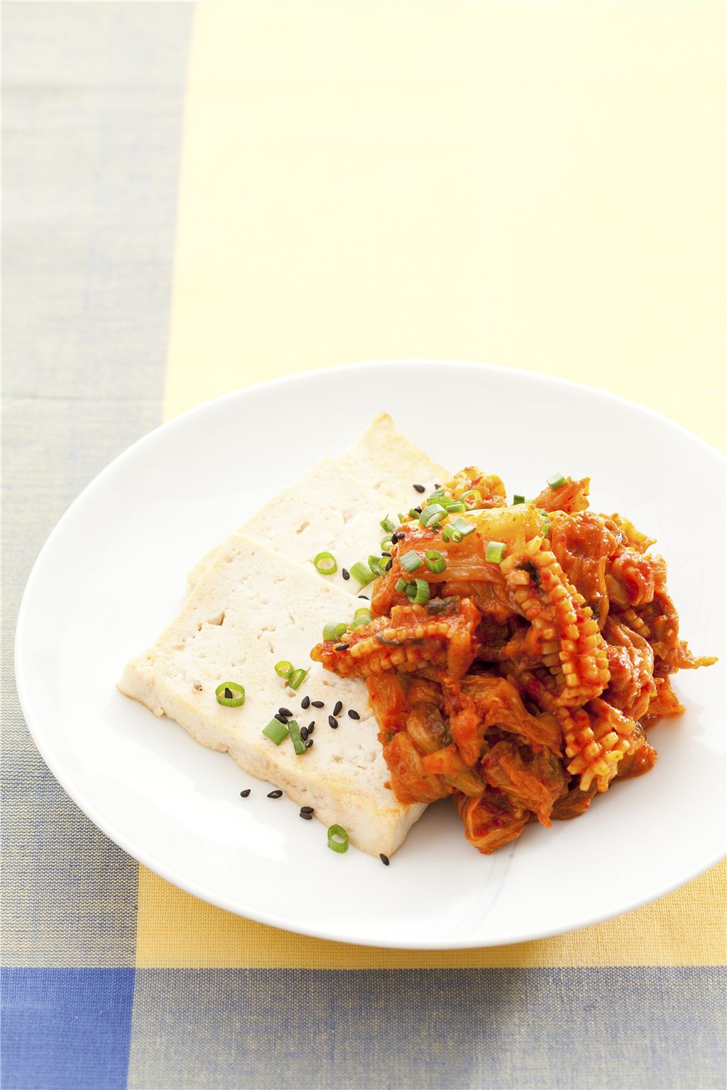 주재료(2인분)오징어 1/2마리, 두부 1/2모, 신김치 150g, 통깨 약간, 식용유 약간오징어 양념장 재료고추장 1, 고춧가루 0.5, 간장 0.3, 다진 파 0.5, 다진 마늘 0.3, 참기름 0.5, 생강·후춧가루 약간씩만들기▶ 요리 시간 30분과정 1