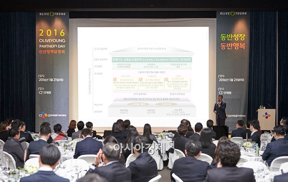 [아시아경제 김현정 기자] CJ올리브네트웍스가 운영하고 있는 헬스앤뷰티 스토어 올리브영이 협력사와의 동반성장 세미나인 '2016 올리브영 파트너스 데이'를 개최했다고 22일 밝혔다. 행사는 전날 CJ인재원 그랜드홀에서 진행됐다. 올리브영 파트너스 데이는 지난해 협력사와의 활동을 되짚어보고 올해 전략을 나눔으로써 동반성장을 도모하고자 매년 열리고 있는 행사다. 올해는 특별히 더 많은 협력사들과의 네트워킹 및 윈윈 전략을 강구하고자 가장 큰 규모로 진행됐다.이날 행사에는 CJ올리브네트웍스 올리브영 부문의 허민호 대표와 각 사업 부문별 임직원 등을 비롯해 100여개의 협력사 관계자들이 참석했다.올리브영은 협력사와의 상생을 넘어서 동반성장을 적극 실현하기 위해 올해 사업 계획뿐 아니라 중장기적 목표에 대해 발표했다. 더불어 협력사의 혁신 활동을 적극 지원하기 위한 올해 3대 정책인 ▲상생 협력도 개선 ▲경영 정보 공유 ▲공정거래 인프라 구축에 대해서도 공유하는 시간을 가졌다.김현정 기자 alphag@asiae.co.kr<ⓒ세계를 보는 창 경제를 보는 눈, 아시아경제(www.asiae.co.kr) 무단전재 배포금지>