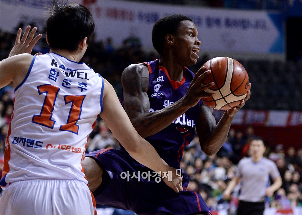 [고양=아시아경제 김현민 기자] 프로농구 고양 오리온과 인천 전자랜드의 경기가 22일 고양체육관에서 열렸다. 오리온 조 잭슨이 상대 수비를 뚫고 공격하고 있다. 김현민 기자 kimhyun81@asiae.co.kr<ⓒ세계를 보는 창 경제를 보는 눈, 아시아경제(www.asiae.co.kr) 무단전재 배포금지>