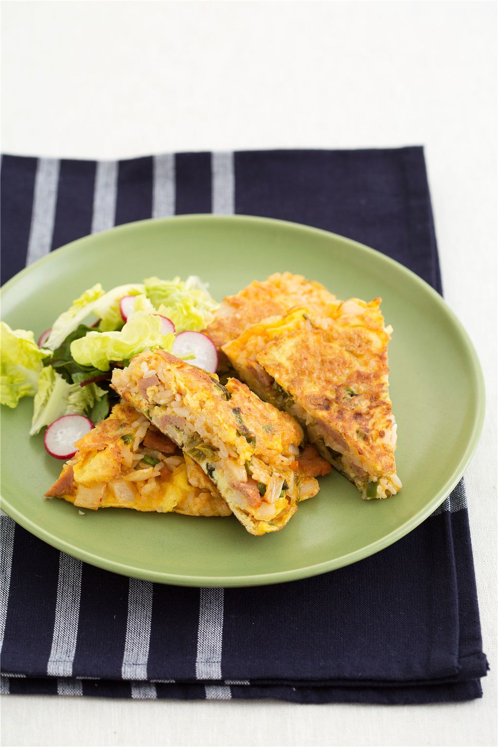 보통 김치볶음밥엔 달걀 프라이밖에 정답이 없다고 생각하지만 달걀을 넉넉히 풀어 김치볶음밥과 섞어 뚜껑을 덮고 은근히 익혀주면 김치볶음밥 프리타타를 만들 수 있다. 프리타타(frittata)는 달걀에 채소, 육류, 치즈, 파스타 등의 재료를 취향에 따라 넣어 만드는 이탈리아식 오믈렛이다. 오믈렛은 달걀을 풀어서 평평하게 부친 것에 속재료를 얹은 다음 덮어서 속재료가 보이지 않도록 하지만 프리타타는 달걀과 부재료를 함께 섞어 익힌다는 것이 큰 차이점이다.