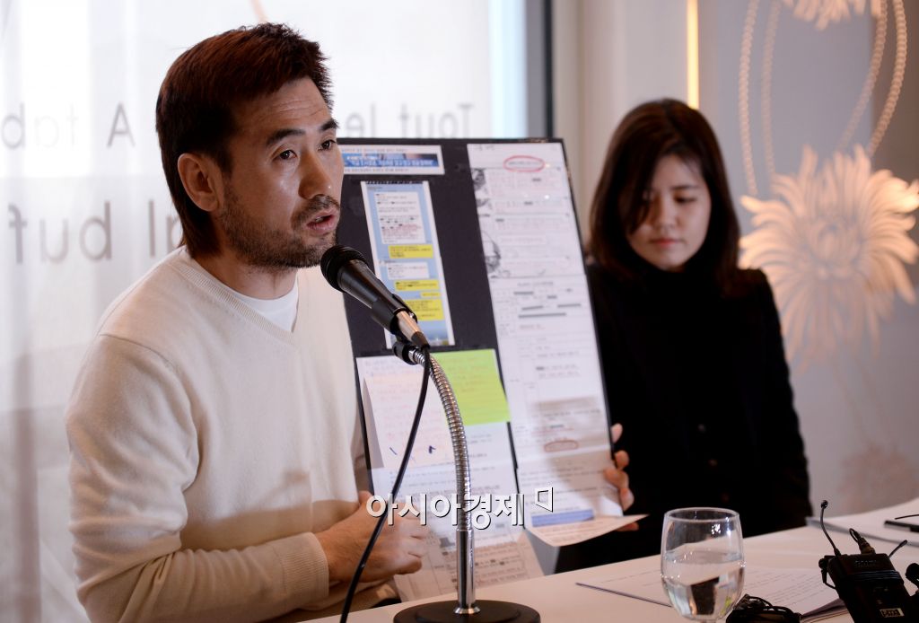 [아시아경제 김현민 기자] 프로축구 선수 김병지가 25일 서울 종로구 르메이에르빌딩의 한 음식점에서 '아들 학교폭력' 사건 관련 공식 입장 발표 기자회견을 하고 있다. 앞서 지난해 11월4일 학부모 이씨는 자신의 아들이 김병지의 아들에게 폭행을 당했다는 사실을 밝히는 글을 온라인 커뮤니티에 게재했다. 이에 김병지는 같은 학급의 학부모와 담임교사, 학교장을 상대로 손해배상 소송을 제기했다. 학부모 이씨에게 초등학교 2학년인 아들을 일방적인 학교 폭력 가해자로 만들었다며 명예 훼손에 따른 손해배상으로 3000만원의 배상을 요구했다. 김현민 기자 kimhyun81@asiae.co.kr<ⓒ세계를 보는 창 경제를 보는 눈, 아시아경제(www.asiae.co.kr) 무단전재 배포금지>