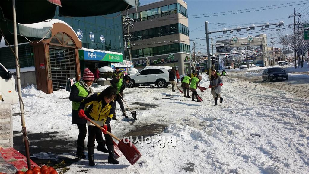 25일 나주시 직원들이 시민들과 함께 제설작업을 벌이고 있다. 사진=나주시