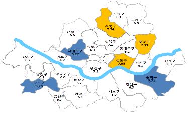 [아시아경제 조은임 기자] 서울의 주택 전월세전환율이 연 6.4%로 나타났다. 1년 전과 비교하면 소폭 낮아졌지만 시중금리보다는 높은 수준이어서 서민층의 주거부담은 여전하다는 분석이다. 주택 임대차보호법에서 규정하는 전월세전환율인 6%보다 높다.27일 서울시가 서울부동산정보광장(//land.seoul.go.kr)에 공개한 자료에 따르면 지난해 4분기 서울시내 반전세(보증부 월세) 주택의 전월세전환율은 연 6.4%로 전년동기보다 0.7%포인트 하락했다. 전월세전환율은 전세 보증금을 월세로 전환할 때 적용하는 이율로 수치가 높을수록 보증금 대비 월세금의 부담이 높다는 의미다.전반적으로 전환율이 낮아지긴 했지만 현행 법정 기준보다 평균치가 높은 것이어서 서민의 부담이 크다는 지적이 나온다. 관련 법은 기준금리(1.5%)의 4배인 6%를 전환율 상한으로 규정하고 있다. 자치구별로는 성동구의 전월세전환율이 7.55%로 가장 높았고, 강북구가 7.54%, 중랑구가 7.33% 등으로 높은 편에 속했다. 반면 구로구가 5.7%로 가장 낮았고, 송파구가 5.71%, 서대문구가 5.77%로 뒤를 이었다. 권역별로는 종로·중구·용산 등 도심권이 6.8%로 가장 높았고, 서초·강남·송파·강동 등 동남권이 6.2%로 가장 낮았다. 전체적으로는 도심권, 동북권, 서남권, 서북권, 동남권 순으로 3분기 대비 전월세전환율이 오른 곳은 동북권 한 곳뿐이다. 주택 유형별로 보면 도심권의 단독다가구가 8.8%로 최고수준을, 서북권 아파트는5.33%로 최저수준으로 나타났다.전세보증금별로는 보증금 1억원 이하가 8.0%로 이를 초과하는 경우보다 약 3%포인트 높았다. 전세보증금 수준에 따른 전환이율의 격차가 크게 벌어지고 있는 것이다. 오피스텔 원룸 등 주택유형이 아닌 주거용의 전월세전환율은 6.5%로, 여전히 주택유형보다 높은 수준이나 점차 하향하는 추세다. 도심권이 7.1%로 가장 높았고, 동남권이 6.2%로 가장 낮았다.정유승 서울시 주택건축국장은 "서울의 전월세전환율이 점차 하락하고 있다고는 하나, 시중 금리에 비해 월세 서민의 부담은 높은 편"이라며 "전월세 서민에게 보다 도움이 되도록 법 개정을 건의함은 물론 전월세 시장 모니터링을 꾸준히 지속할 것"이라고 말했다. 조은임 기자 goodnim@asiae.co.kr<ⓒ세계를 보는 창 경제를 보는 눈, 아시아경제(www.asiae.co.kr) 무단전재 배포금지>