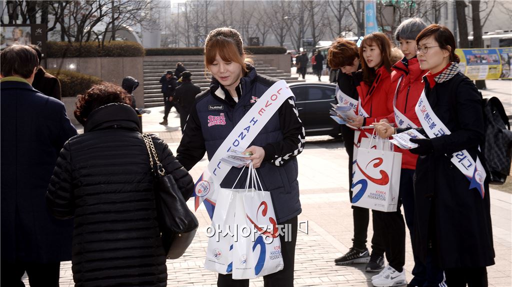 [아시아경제 김현민 기자] 2016 SK핸드볼 코리아리그 미디어데이가 27일 서울 중구 프레스센터에서 열렸다. SK 김온아가 미디어데이를 마친 뒤 거리 홍보를 하고 있다.김현민 기자 kimhyun81@asiae.co.kr<ⓒ세계를 보는 창 경제를 보는 눈, 아시아경제(www.asiae.co.kr) 무단전재 배포금지>