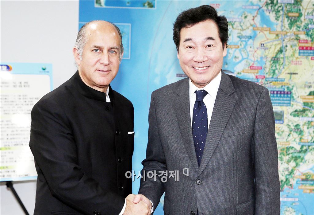 이낙연 전남지사는 27일 전남도청을 방문한 오스카 에레라(OSCAR HERRERA) 주한 에콰도르대사와 면담하고, 농업분야의 교류·협력 방안에 대해 논의했다. 사진제공=전남도