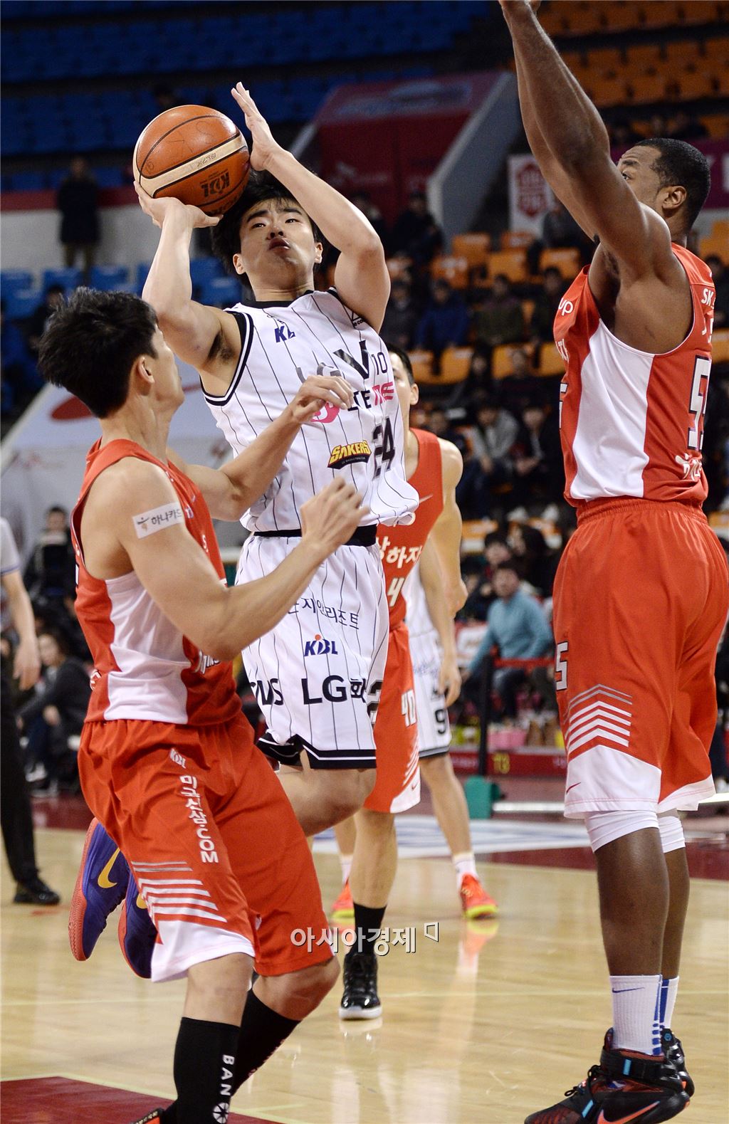 [잠실=아시아경제 김현민 기자] 프로농구 서울 SK와 창원 LG의 경기가 27일 잠실학생체육관에서 열렸다. LG 정성우가 상대 수비를 뚫고 슛하고 있다. 김현민 기자 kimhyun81@asiae.co.kr<ⓒ세계를 보는 창 경제를 보는 눈, 아시아경제(www.asiae.co.kr) 무단전재 배포금지>