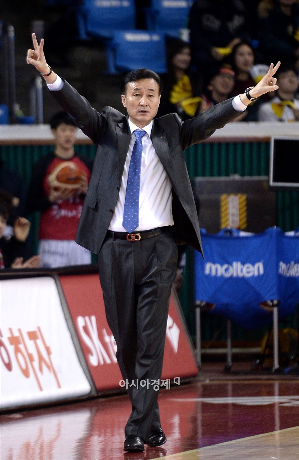 [잠실=아시아경제 김현민 기자] 프로농구 서울 SK와 창원 LG의 경기가 27일 잠실학생체육관에서 열렸다. LG 김진 감독이 선수들을 독려하고 있다. 김현민 기자 kimhyun81@asiae.co.kr<ⓒ세계를 보는 창 경제를 보는 눈, 아시아경제(www.asiae.co.kr) 무단전재 배포금지>