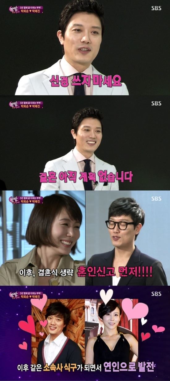 박희순 박예진 혼인신고. 사진=SBS '한밤의 TV연예' 방송화면 캡처