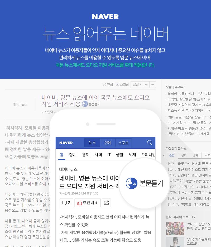 영문 뉴스에 이어 국문 뉴스에도 '본문듣기' 기능 추가