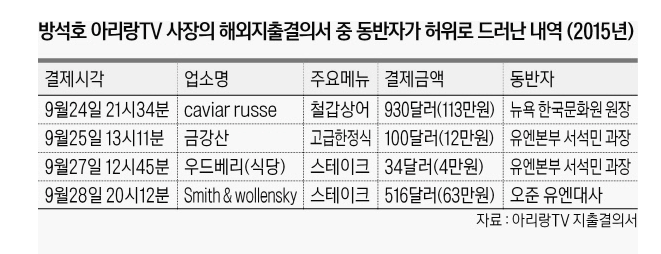 최근 '호화출장' 논란 관련 자료 / 사진 = 아리랑TV 지출결의서 캡처