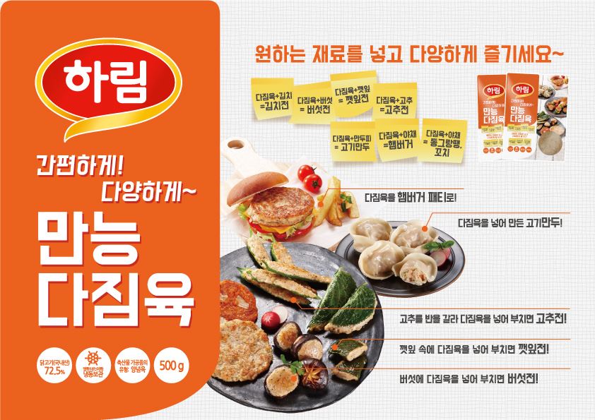 [아시아경제 이주현 기자]하림은 설 명절을 앞두고 명절음식을 비롯한 다양한 요리에 활용 가능한 '만능 다짐육'을 출시했다.이 제품은 닭안심을 주 원료로 다진 닭고기로 만들어 담백하고 부드러운 맛이 일품이며 김치, 버섯, 깻잎, 고추 등의 다양한 식재료를 활용해 김치전, 버섯전, 깻잎전, 고추전 등 여러 가지 요리에 활용 가능한 것이 특징이다. 특히 손이 많이 가는 명절음식인 만두나 동그랑땡 등도 간편하게 만들 수 있어 주부들로부터 좋은 반응을 얻을 것으로 기대하고 있다. 필수 아미노산이 풍부하게 함유된 영양만점 닭고기로 성장기 어린이의 두뇌발달에 도움을 줄 뿐 아니라, 부드러운 식감을 자랑해 아이들 간식까지 두루 활용할 수 있다. 신제품 하림 '만능 다짐육'은 설 선물세트로 구성돼 판매된다. 설 명절 이후에는 하림마켓과 이마트몰, G마켓 등 주요 온라인 쇼핑몰에서 구입 가능하다.이주현 기자 jhjh13@asiae.co.kr<ⓒ세계를 보는 창 경제를 보는 눈, 아시아경제(www.asiae.co.kr) 무단전재 배포금지>