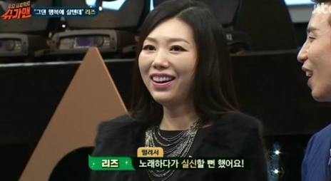 [아시아경제 온라인이슈팀] 가수 리즈가 ‘슈가맨’에 출연해 화제다.2일 방송된 JTBC '투유프로젝트-슈가맨(슈가맨)'에서 리즈는 ‘그댄 행복에 살 텐데’를 부르며 15년 동안 숨겨왔던 포텐을 터트렸다. 이날 방송에서 리즈는 "실신할 것 같다"고 운을 뗐다.이어 리즈는 "15년 만에 무대에 섰다"며 "기대 안하고 있었는데 많은 분들이 지켜주셔서 영광"이라고 말했다.한편 JTBC ‘투유프로젝트-슈가맨(슈가맨)’은 매주 화요일 오후 10시 50분에 방송된다.온라인이슈팀 issue@asiae.co.kr<ⓒ세계를 보는 창 경제를 보는 눈, 아시아경제(www.asiae.co.kr) 무단전재 배포금지>