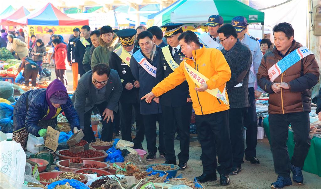 [구충곤 화순군수 등이 전통시장을 찾아 상인들의 애로를 청취하는 등 전통시장 활성화 캠페인을 벌였다.]