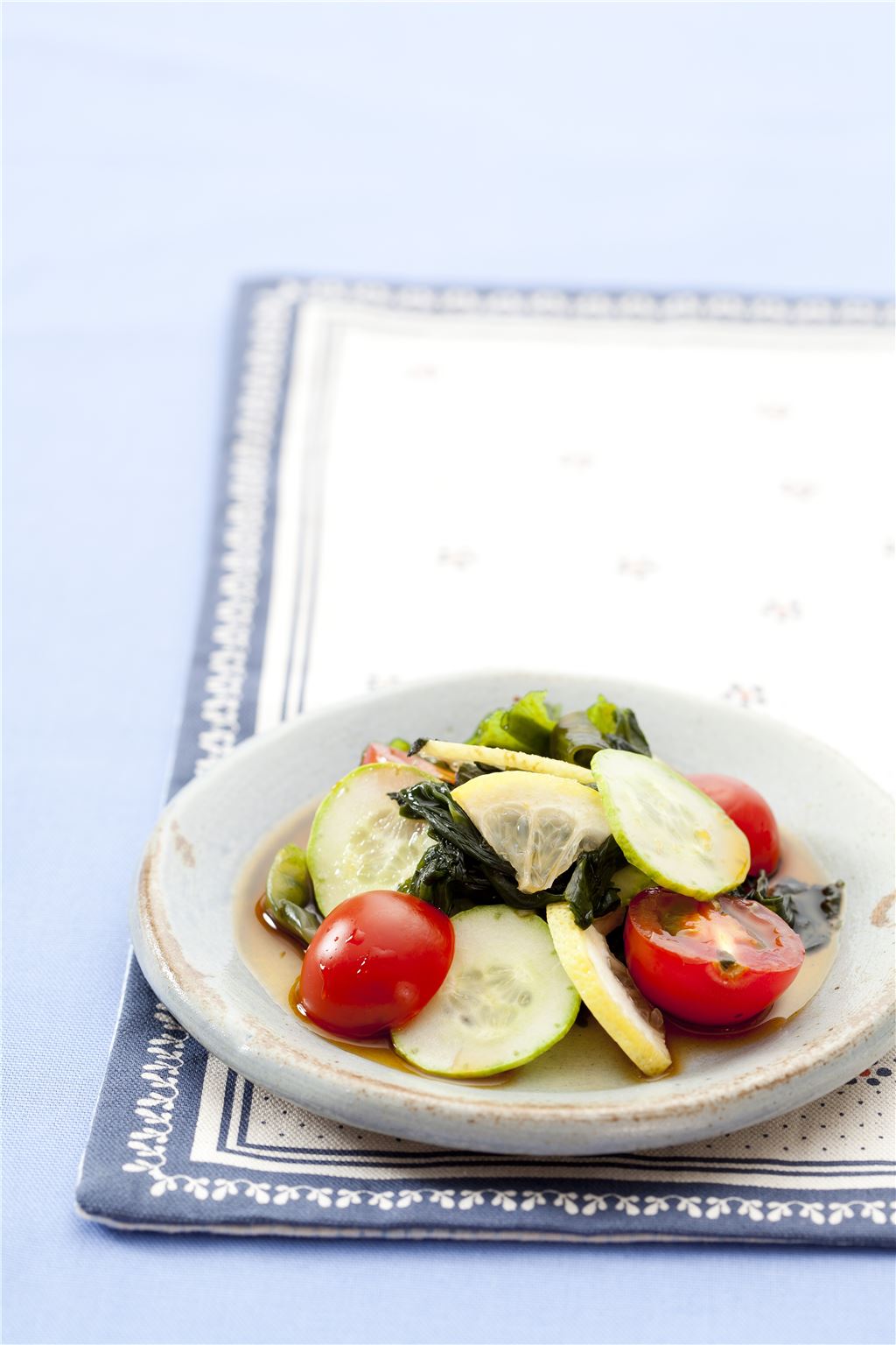 주재료(2인분)마른 미역(자른 것) 1/4컵, 오이 1/4개, 방울토마토 6개, 레몬 2조각, 무순 약간, 소금 약간 매실 양념 재료간장 1, 매실청 1, 식초 0.5, 설탕 0.5, 소금·통깨·참기름 약간씩 만들기▶ 요리 시간 20분1. 마른 미역은 찬물에 불려 부드러워지면 끓는 물에 색이 선명해지도록 데쳐 찬물에 헹구어 물기를 뺀다. <br /> (Tip 미역은 오래 삶으면 물러질 수 있다. 찬물에 불렸다가 살짝 데쳐 찬물에 빨리 헹궈야 신선한 미역을 부드러운 맛으로 먹을 수 있다.)<br />