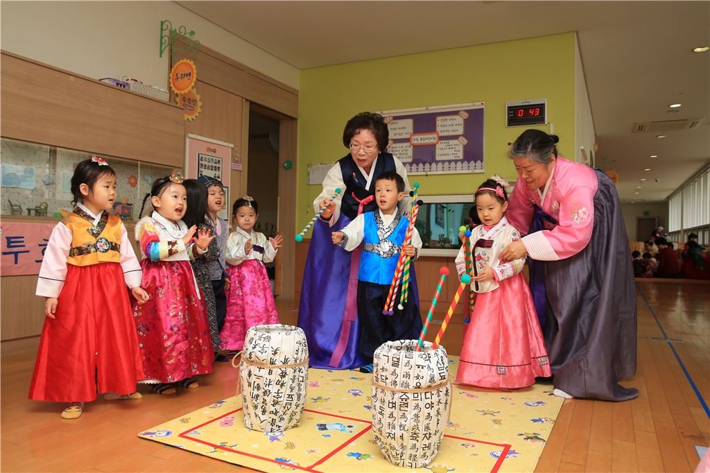 [아시아경제 박종일 기자] 성동구 용답어린이집은 3일 오전 10시30분 민족 최대의 명절 설을 맞아 투호놀이, 제기차기 등 다채로운 행사를 열었다.이날 한복을 곱게 차려 입은 아이들이 할아버지 할머니와 함께 투호놀이, 사방치기, 제기차기 등을 즐겼다. 아이들의 세배를 받은 할아버지, 할머니들은 “올해도 건강하게만 자라다오~”며 덕담을 건네며 미소를 지었다. 박종일 기자 dream@asiae.co.kr<ⓒ세계를 보는 창 경제를 보는 눈, 아시아경제(www.asiae.co.kr) 무단전재 배포금지>