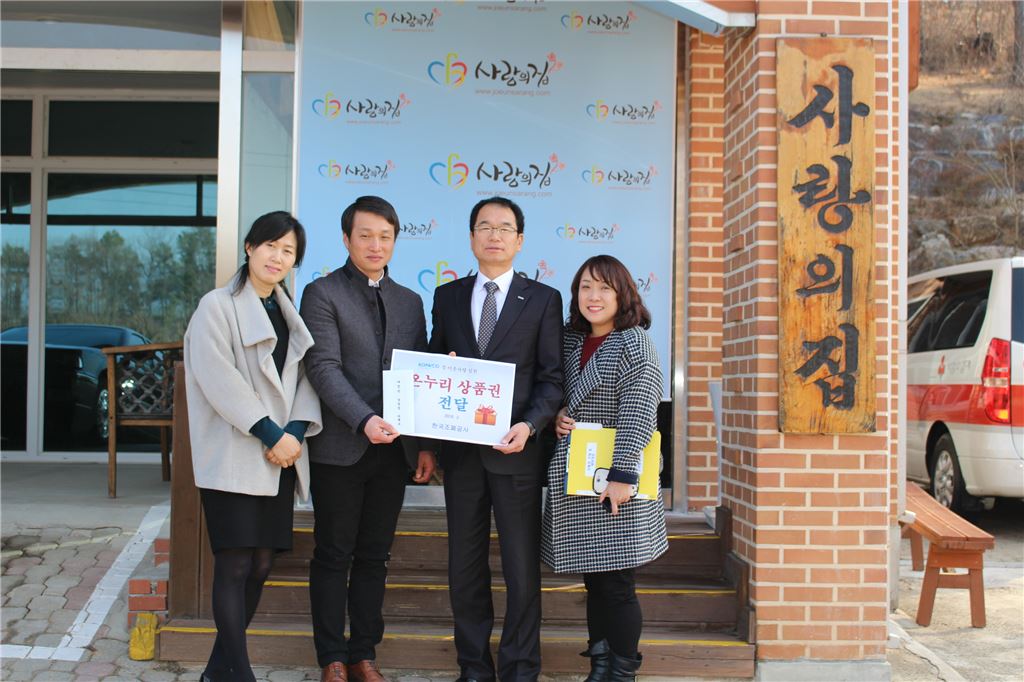 [아시아경제(대전) 정일웅 기자] 한국조폐공사는 대전, 경산, 부여 등지에 소재한 사회복지시설 20여곳에 1600만원 상당의 온누리 상품권을 전달했다고 5일 밝혔다. 상품권 전달은 설을 맞이해 소외이웃에게 온정의 손길을 내민다는 취지로 기획·진행됐다. 조폐공사 관계자와 시설 관계자 등이 전달식을 마치고 기념사진을 찍고 있다. 조폐공사 제공대전=정일웅 기자 jiw3061@asiae.co.kr<ⓒ세계를 보는 창 경제를 보는 눈, 아시아경제(www.asiae.co.kr) 무단전재 배포금지>정일웅 기자 jiw3061@asiae.co.kr<ⓒ아시아 대표 석간 '아시아경제' (www.newsva.co.kr) 무단전재 배포금지>