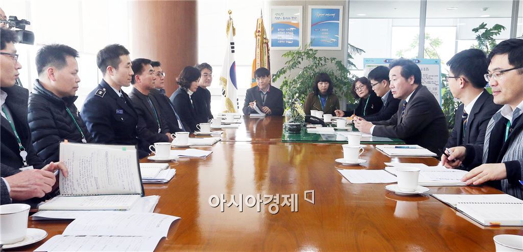 이낙연 전남지사는 설명절을 앞 둔 5일 집무실에서 직원들을 격려하고 간담회를 가졌다. 사진제공=전남도