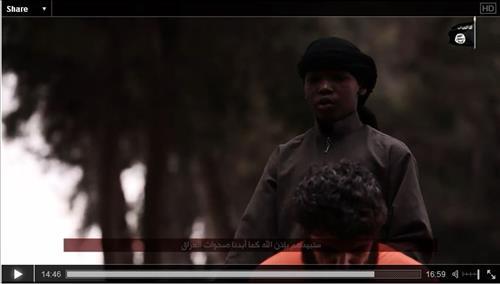 IS 선전비디오에서 인질을 처형한 흑인 소년. 사진=헤비닷컴 동영상 캡처ㄴ<br />