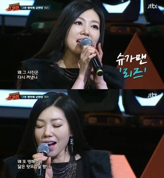 [아시아경제 온라인이슈팀] ‘얼굴 없는 가수’ 리즈가 ‘슈가맨’에서 15년 만에 무대에 섰다.지난 2일 종합편성채널 JTBC ‘투유프로젝트- 슈가맨(이하 ’슈가맨‘)’에서는 두 번째 슈가맨으로 리즈가 등장했다.이날 노래를 마친 리즈는 "노래하다가 실신할 뻔했다"며 "너무 반갑다. 15년 만에 무대에 섰다"고 소감을 밝혔다.한편 '슈가맨'은 매주 화요일 오후 10시 50분 방송된다. 온라인이슈팀 issue@asiae.co.kr<ⓒ세계를 보는 창 경제를 보는 눈, 아시아경제(www.asiae.co.kr) 무단전재 배포금지>