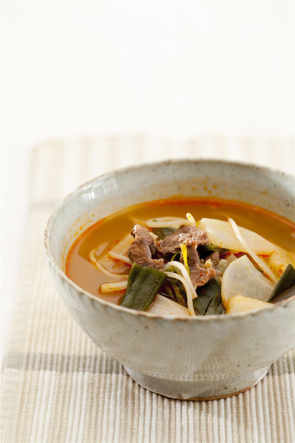 재료(2인분)쇠고기 150g, 무 1/4개, 콩나물 100g, 대파 2대, 고춧가루 1, 국간장 1, 물 5컵, 다진 마늘 0.5, 참기름 2, 소금, 후춧가루 약간씩만들기▶ 요리 시간 35분1. 쇠고기는 납작하게 썬다.<br /> (Tip 쇠고기는 국거리용으로 구입한다.)<br />