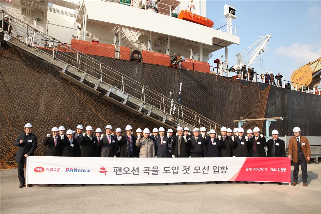 [아시아경제 이주현 기자]지난해 법정관리에서 벗어나 하림그룹에 편입된 팬오션이 새롭게 추진한 곡물유통사업의 첫 성과를 거뒀다.팬오션은 11일 곡물유통사업 개시 이후 첫 물량으로 국내 사료업체에서 공동 구매한 남미산 옥수수 7만1500t을 직접 구매·운송해 인천항에 하역했다고 밝혔다.팬오션에 따르면 이번 국내에 처음 들여온 옥수수는 사료용으로, 지난해 9월 계약한 물량이며 지난해 12월 브라질 산토스항에서 피오렐라호(8만1500t급)에 선적 1개월 만에 인천항 TBT 엘리베이터에 하역됐다.지난해 7월 하림그룹에 편입되며 새롭게 출발한 팬오션은 곡물 사업실을 신설하고 미국 현지법인인 팬오션 아메리카가 미 농무성(USDA)으로부터 곡물수출허가를 취득하는 등 글로벌 곡물유통사업을 추진해왔으며 지난해에만 국내 도입 곡물 31만5000t의 공급계약을 체결하는 성과를 거뒀다.우리나라는 매년 사료곡물 1000만t을 포함해 약 1500만t의 곡물을 외국에서 수입(2014년 곡물자급률 24%)하고 있으나 곡물유통사업에 진출한 국내 기업이 희소해 대부분의 물량을 외국 곡물유통기업들에 의존해 왔다.이날 하역한 곡물은 첫 도착 분으로 나머지 5개 모선 분량의 곡물들은 5~6월 국내에 도착할 예정이다.팬오션은 이날 김홍국 하림그룹 회장과 추성엽 팬오션 대표이사 등 관계자들이 참석한 가운데 인천내항 TBT부두에서 곡물 도입 첫 모선 입항 기념식을 갖고 글로벌 곡물 트레이더 메이저로서의 성장을 다짐했다.팬오션 관계자는 "곡물유통사업은 우리나라에 꼭 필요하지만 해운기반과 곡물 엘리베이터 운영경험 등을 가진 팬오션만이 잘 해낼 수 있는 사업"이라며 "곡물의 안정적 조달을 위해 최선을 다하는 한편 차별화된 역량을 키워 동북아식품 시장은 물론 세계 곡물유통시장으로 진출하여 안정적 수익기반을 만들어 나아가겠다"고 말했다.이주현 기자 jhjh13@asiae.co.kr<ⓒ세계를 보는 창 경제를 보는 눈, 아시아경제(www.asiae.co.kr) 무단전재 배포금지>