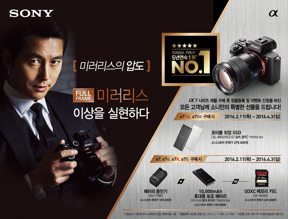 소니 A7 시리즈, A6000, A5100, A5000 등 미러리스 전 제품 구매 고객 대상외장SSD, 배터리충전기, 보조배터리, 메모리카드, MDR 이어폰·헤드폰 등 증정[아시아경제 김유리 기자] 소니코리아가 지난해 국내 전체 렌즈교환식 카메라 시장 1위 달성을 기념해 11일부터 4월3일까지 소니의 미러리스 카메라 전 라인업 구매 및 정품 등록 고객을 대상으로 사은품 증정 프로모션을 진행한다.소니는 2015년 연간 국내 전체 렌즈교환식 카메라 시장과 렌즈일체형 카메라 시장에서 수량 기준으로 1위를 달성했다. 소니코리아는 2010년 6월 미러리스 카메라 첫 출시 이후 지속적인 성장을 거듭하며 국내 전체 렌즈교환식 카메라 시장의 61%를 차지한 미러리스 카메라 시장에서 56%의 점유율로 시장을 이끌어 나가고 있다.이번 프로모션은 35mm 풀프레임 렌즈교환식 미러리스 카메라 'A7' 시리즈부터 APS-C 렌즈교환식 미러리스 카메라 A6000, A5100, A5000 시리즈까지 소니의 미러리스 카메라 전 제품을 대상으로 진행된다. 행사 기간 동안 해당 제품을 구매하고 4월7일까지 소니 고객지원 사이트()에서 정품 등록과 이벤트 신청을 마치면 제품에 따라 소니 256GB 포터블 외장 SSD, 배터리 충전기, 휴대용 보조 배터리, SDXC 메모리 카드, MDR 이어폰, MDR 헤드폰 등 사은품을 증정한다.소니의 보급기 미러리스 카메라인 A5000과 A5100은 2015년 연간 기준 전체 렌즈교환식 카메라 시장에서 1위, 2위를 차지한 베스트셀러 제품으로, 미러리스 카메라 시장에서 두 제품의 점유율이 41%를 차지하는 등 인기를 얻고 있다. A6000은 2015년 전체 중급기 카메라 시장 에서 38%의 점유율로 1위를 기록하며 돌풍을 일으키고 있는 제품이다. DSLR과 동일한 2430만 화소의 대형 이미지센서를 갖췄다. 소니의 세계 최초 풀프레임 미러리스 카메라 A7 시리즈는 다양하고 활동적인 여가 생활을 즐기는 사진 애호가 및 중장년층을 중심으로 인정받으며 풀프레임 미러리스 카메라의 대중화를 선도하고 있다. 인기에 힘입어 2015년 연간 기준 전체 풀프레임 카메라 시장 점유율 30%로 미러리스 카메라 중심으로 재편된 렌즈교환식 카메라 시장을 이끌어 나가고 있다. 이번 프로모션에 대한 자세한 내용은 알파 공식 홈페이지() 및 소니스토어 온라인 홈페이지()에서 확인 가능하다.김유리 기자 yr61@asiae.co.kr<ⓒ세계를 보는 창 경제를 보는 눈, 아시아경제(www.asiae.co.kr) 무단전재 배포금지>