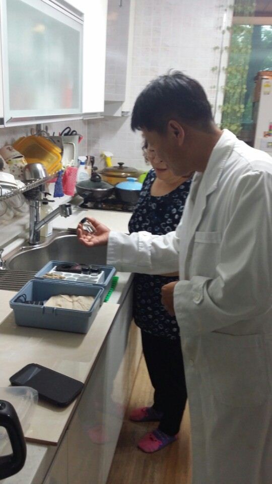구리시 공무원이 수돗물 수질 검사를 하고 있다.