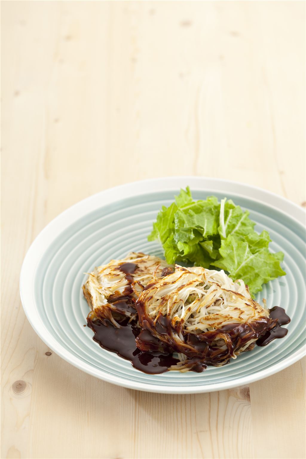3. 감자는 곱게 채 썰어 찬물에 담갔다가 건져 프라이팬에 볶아 소금과 후춧가루로 간한다.<br />