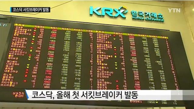[아시아경제 온라인이슈팀] 대내외 악재로 인해 코스닥이 8% 넘게 급락한 가운데 포털사이트에는 ‘사이드카’와 ‘서킷 브레이커’가 실시간 검색어로 등장해 누리꾼들의 궁금증을 자아내고 있다. 12일 낮 12시 현재 코스닥지수는 전날보다 52.94포인트(8.17%) 떨어진 594.75를 나타내고 있다. 지수는 8.36포인트(1.29%) 내린 639.33에 출발해 낙폭을 점차 키우며 오전 11시50분을 넘어서며 힘없이 600선마저 내줬다.코스닥 급락에 사이드카가 발동된데 이어 올해 첫 서킷 브레이커가 발동됐다. 사이드카는 프로그램 매매를 5분간 중단시키는 프로그램 매매 호가관리제도로, 지수선물가격이 전일 종가 대비 5% 이상 상승 또는 하락한 상태가 1분간 지속될 때 발동된다. 사이드카가 발동되면 주식시장의 프로그램 매매 호가가 5분 동안 효력 정지된다.서킷 브레이커는 주식시장에서 주가의 급등락으로 주식시장의 불안정성이 확대될 때 시장의 냉정을 되찾기 위해 만들어진 강제적인 안전장치이다. 한국거래소는 지수가 전일 대비 8% 이상 하락하는 상황이 1분간 지속되는 경우에 서킷 브레이커를 발동한다. 서킷 브레이커가 발동되면 주식매매는 20분간 전면 중단되며 이후 10분간은 호가만 접수해 단일가격으로 거래를 체결시킨다.온라인이슈팀 issue@asiae.co.kr<ⓒ세계를 보는 창 경제를 보는 눈, 아시아경제(www.asiae.co.kr) 무단전재 배포금지>